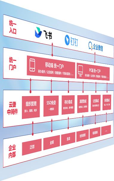 对协作平台提供支持服务,,支持企业应用与协作平台对接,,,包含组织同步、、消息集成、、、待办集成等。。。支持目前主流的协作平台:钉钉、、企微和飞书。。。。